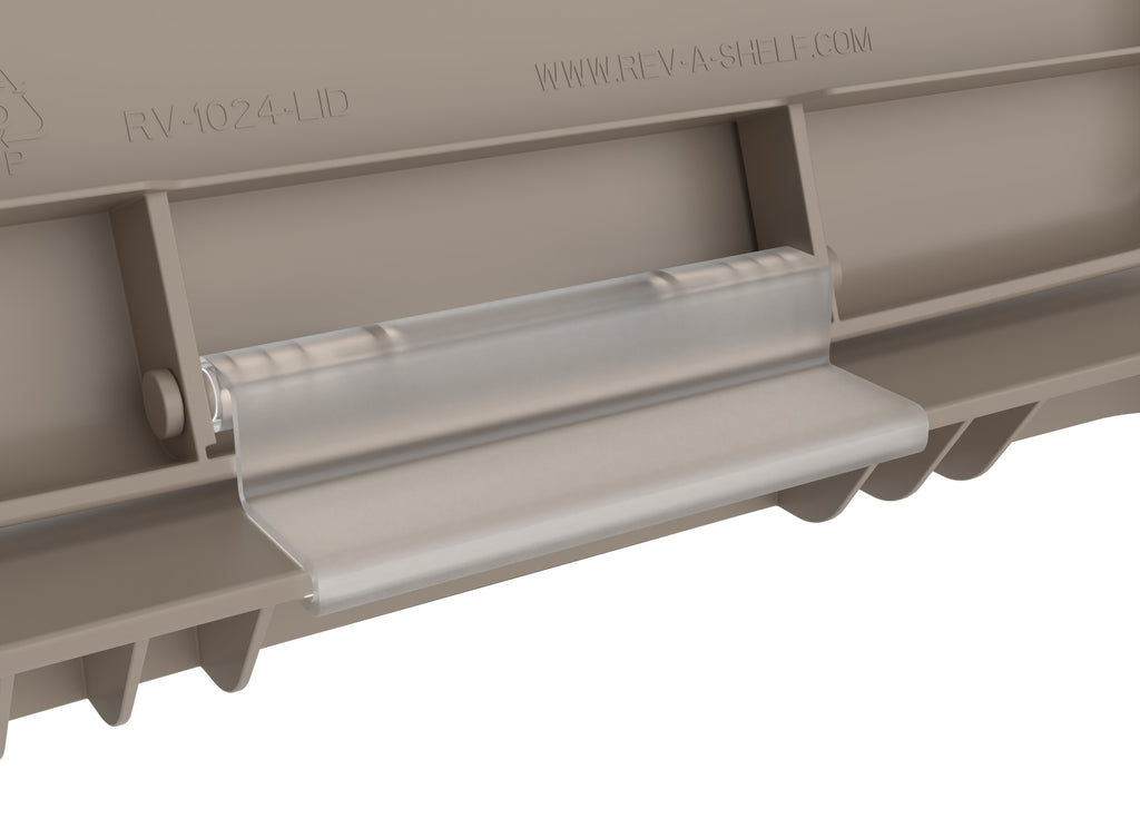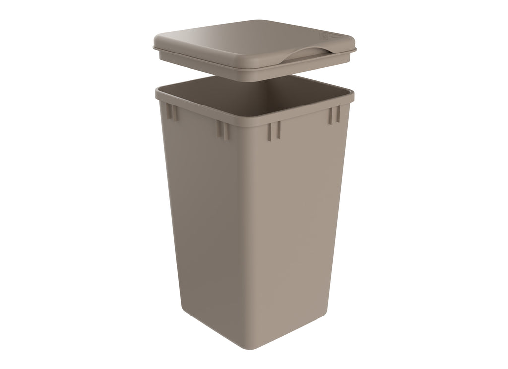 Conceal your trash with this injection molded bi-directional lid, specifically made for Rev-A-Shelf® waste containers. Available in a variety of colors and sizes for Rev-A-Shelf® waste containers. Actual bins and pullout units are sold separately and not included.. Included: (1) Champagne 27 qt. waste container lid