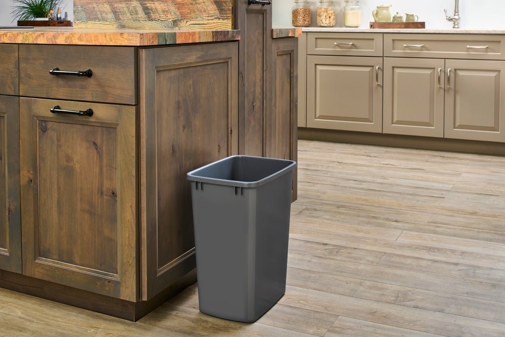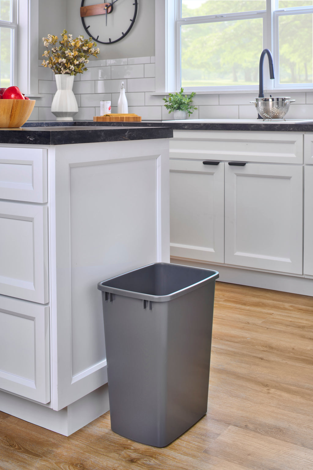 Do you just simply need a replacement or new trash bin? Rev-A-Shelf® polymer bins are not only made in the USA, but injection molded with the highest quality Polypropylene. Though designed to work with ALL of the Rev-A-Shelf® waste containers and trash pull-outs, they can be used for extra trash storage no matter where you need it. Available in variety of sizes and colors.. Included: (1) White 35 qt. waste container only