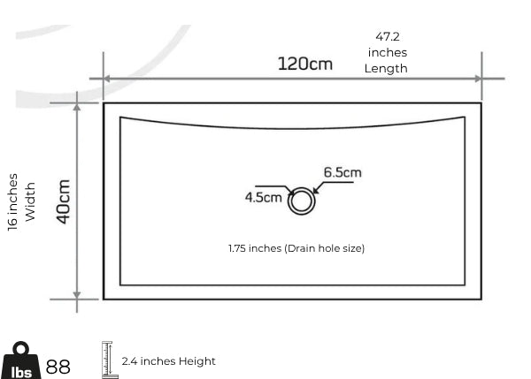 Standard Drain Hole Size – 4.5 cm (1.75") to fit most standard plumbing systems