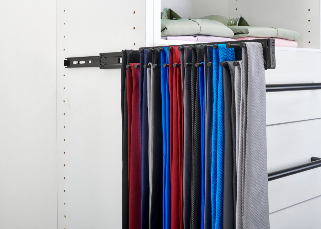 Functionality meets style with the TRC Series Side Mount Tie Rack from Rev-A-Shelf®! These organizers are available in pullout and static varieties and are offered in multiple sizes and finishes.. Included: (1) 12" Matte Black Tie Rack and mounting hardware