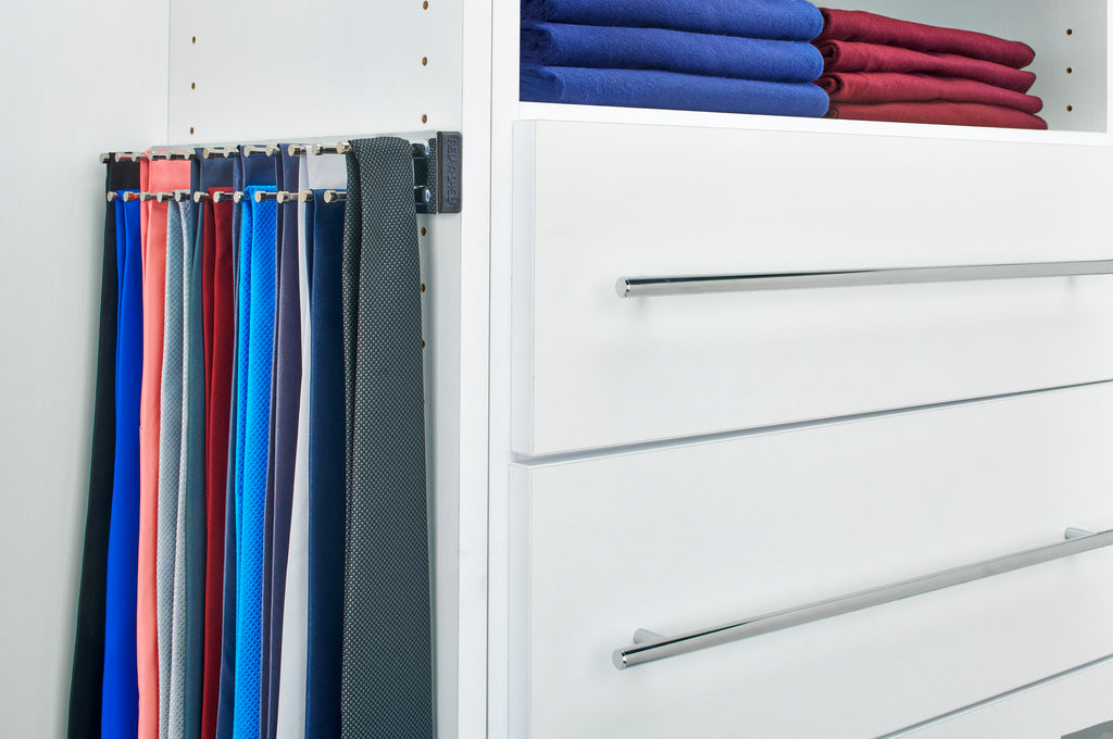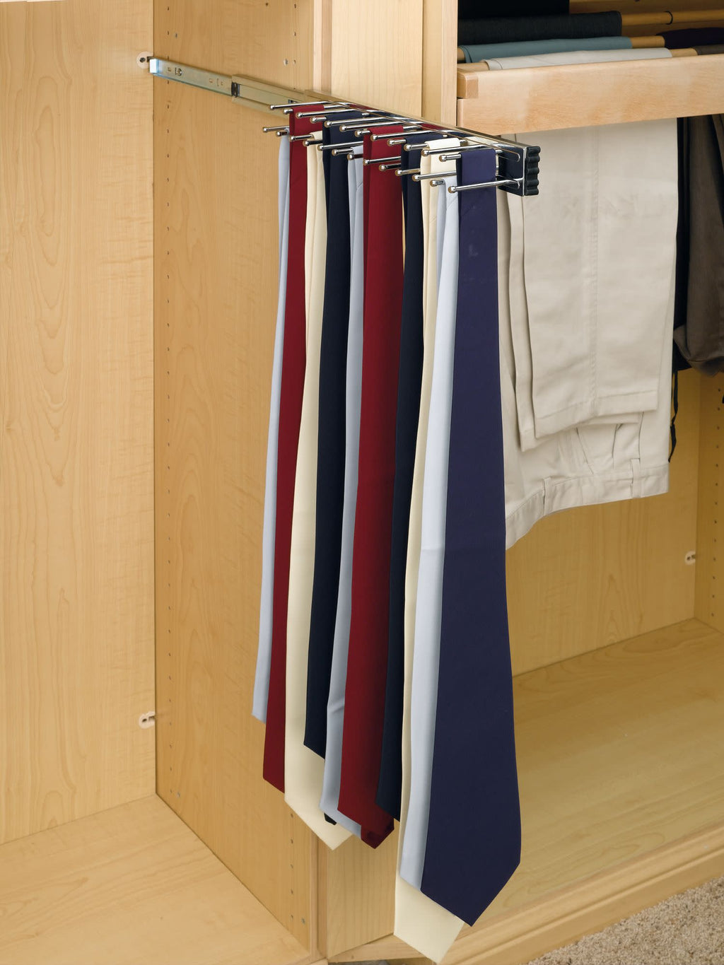 Functionality meets style with the TRC Series Side Mount Tie Rack from Rev-A-Shelf®! These organizers are available in pullout and static varieties and are offered in multiple sizes and finishes.. Included: (1) 14" Chrome rack and mounting hardware